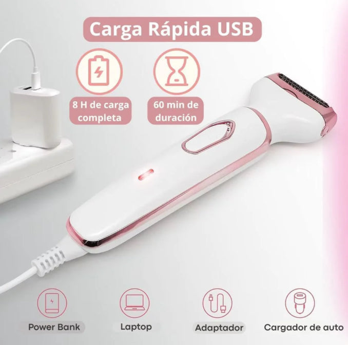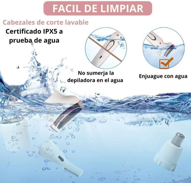 La Depiladora Facial y Corporal 4 en 1 elimina el vello sin dolor, de manera rápida y sin causar irritaciones, cuidando la piel mientras logra un resultado limpio y natural.